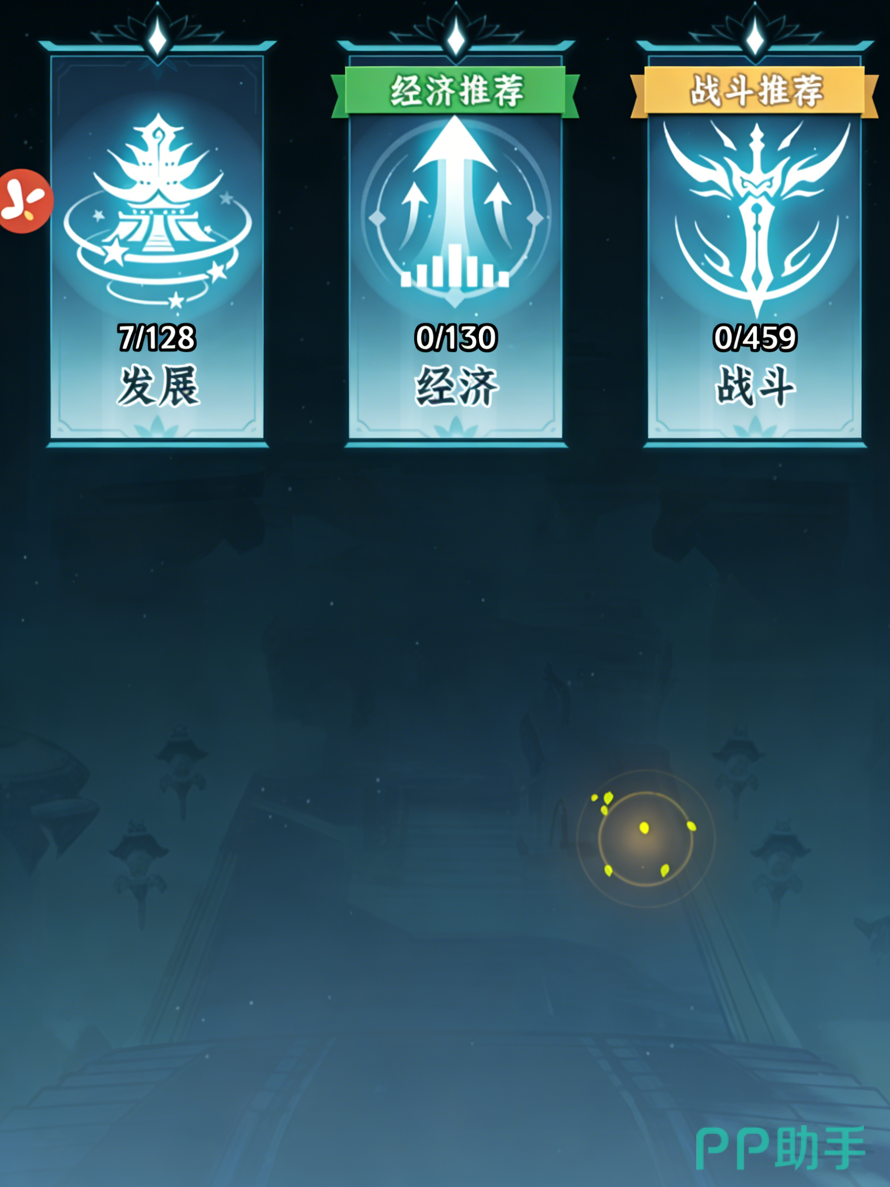 这时就能在参玄阁中选择不一样的分支了,点一下就可以跳出三个选项,分别是升级、任命以及参悟。不过进去之后,看到的东西也是一样的。分别是发展、经济以及战斗,前期的话,就更推荐大家选择发展为主要升级方向,可以让自己更快提升资源的获取速度!