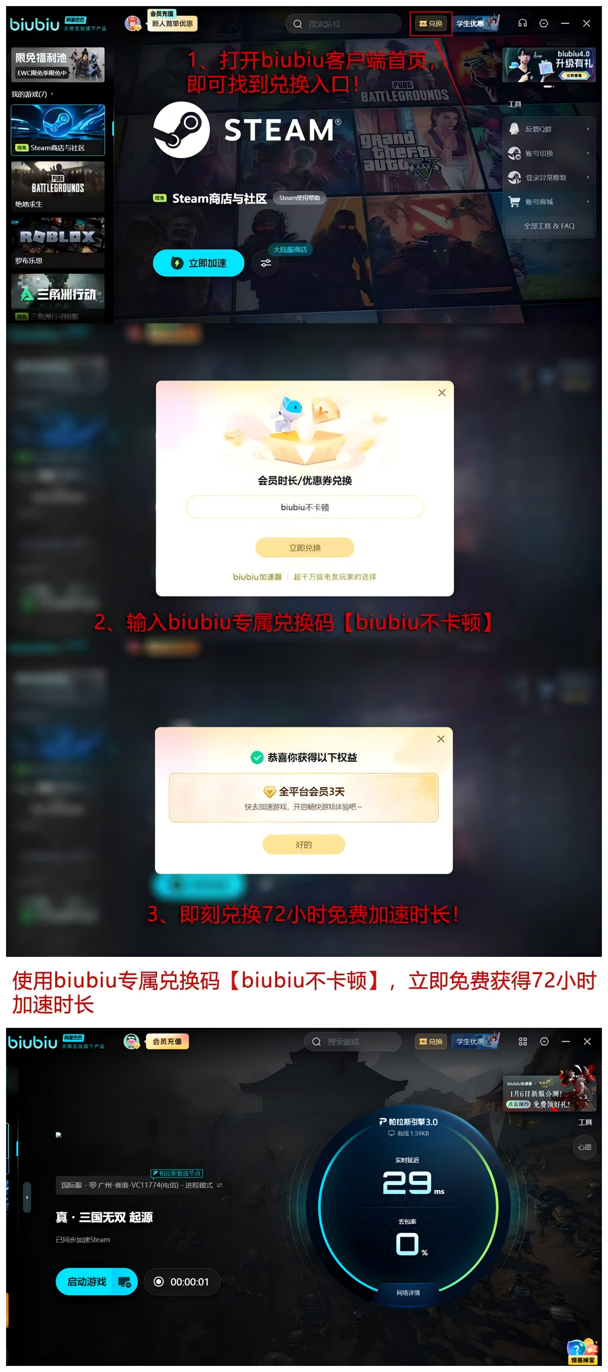 【biubiu不卡顿】提供72小时连续加速权益,叠加面向新注册用户的24小时专属加速时长,合计可达96小时。所有功能均支持先体验后使用,产品策略聚焦于实际性能表现与用户信任建立,无强制绑定或隐性收费机制。