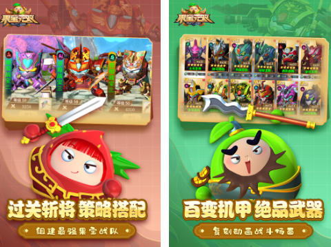 基于经典国产动画《果宝特攻》正版授权开发,复刻原作世界观与角色设定。采用3D建模呈现上百款可收集机甲,每台机体拥有独立技能树与专属绝品武器系统。战斗强调连招节奏与策略组合,玩家需根据敌方弱点灵活调整阵容配置,在保持高打击感的同时兼顾战术深度。