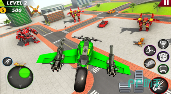 融合变形机制与第三人称射击玩法,玩家可在战斗中实时切换形态——包括人形机甲、载具形态(如公共汽车、自行车)等,适配不同地形与敌人类型。核心目标为精准清除各类机械单位,累计积分通关。除常规战场外,还包含与巨型生物单位(如大猩猩)的跨维度对抗内容,拓展战斗维度。