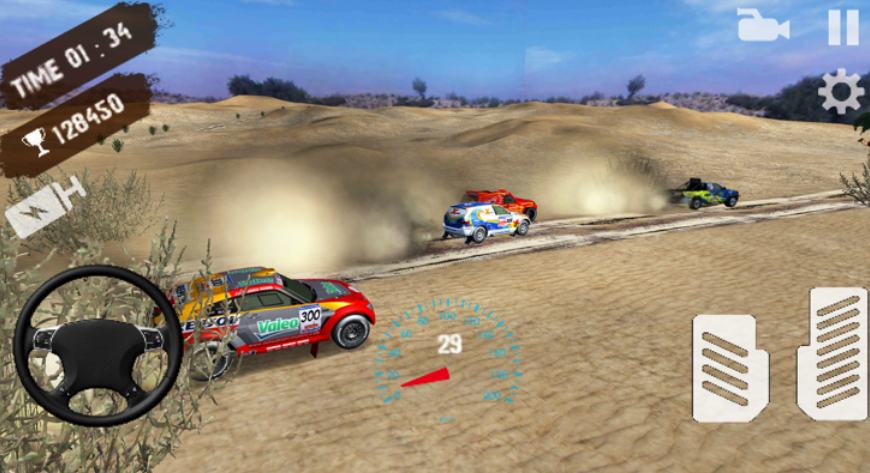 聚焦极限越野竞速体验,游戏以真实拉力赛逻辑为基础,构建多变沙漠赛道:包括松软流沙区、陡峭沙丘坡道、干涸河床乱石带及盐碱地镜面路段。车辆调校系统覆盖悬挂硬度、胎压、差速器锁止等专业参数;赛事模式包含计时挑战、淘汰赛、耐力赛及天气动态影响(如沙尘暴降低能见度)。操作采用双摇杆+物理反馈机制,强调重心转移与油门控制精度,为竞速爱好者提供高拟真驾驶手感。