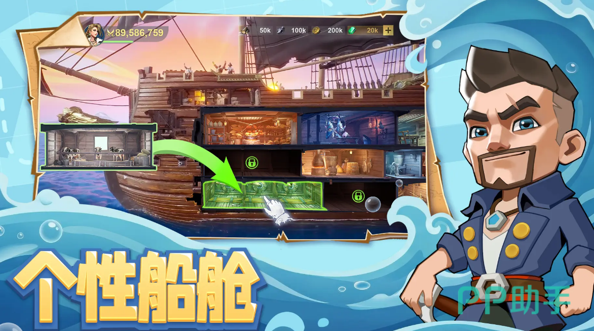 游戏内大家可以去打造属于自己的舰船,而且在其中也是有着不同布局,比如炮台和仓库等就是其中之一,让玩家自己去进行打造,可以去全面提升对应舰船的战斗力以及资源方面的获取速度。