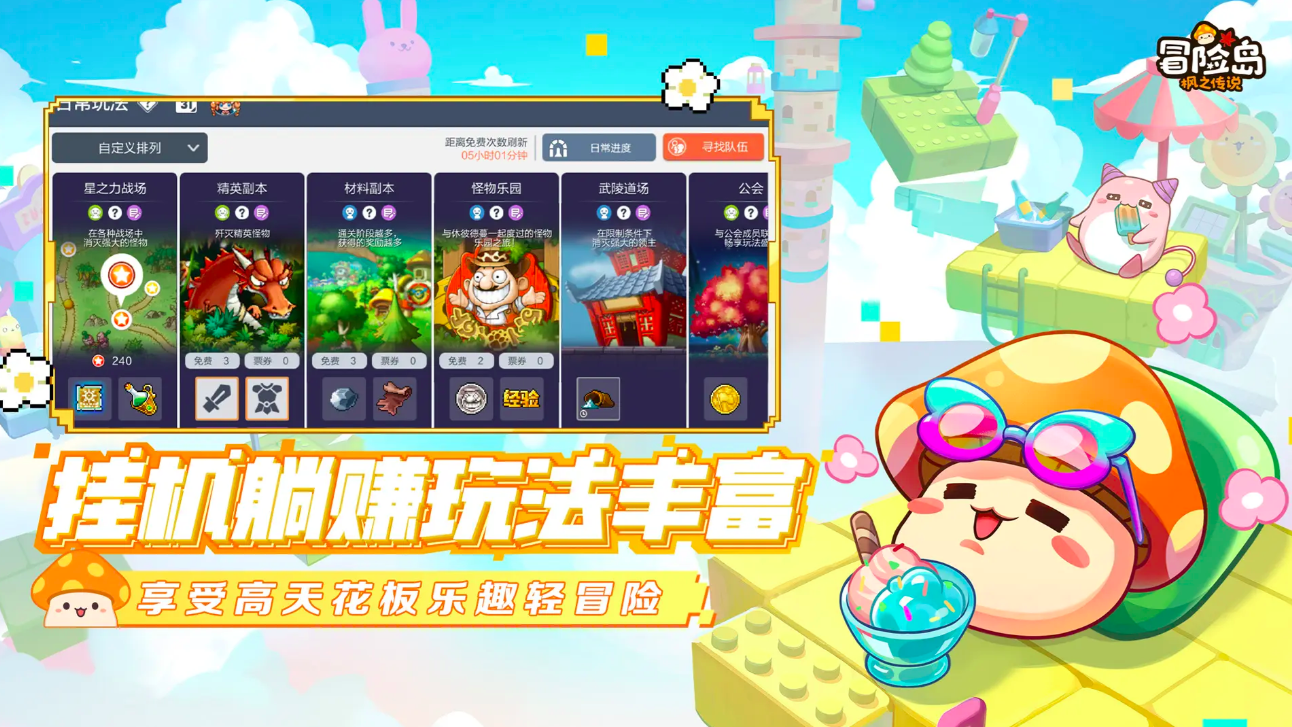 基于经典IP《冒险岛》深度开发的正统续作,延续MMO核心玩法框架,同时引入岛屿精灵养成系统,兼顾策略性与成长感。支持全自动挂机机制,适合碎片化时间体验;职业体系覆盖20余种定位,外观自由度高,角色造型风格萌趣多样。地图探索节奏明快,副本挑战富有层次,整体体验兼顾怀旧情怀与现代优化。