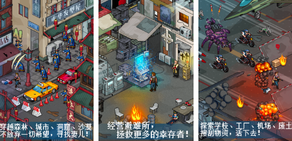 末日废土题材像素动作游戏。涵盖城市街区、废弃工厂、荒原沙漠等十余种地貌场景,物理破坏系统增强环境交互真实感。主线围绕寻找失散妻儿展开,情感驱动力贯穿全程;避难所建设模块融合资源管理与防御布局,考验玩家长期规划能力。操作响应灵敏,连招系统富有节奏变化。