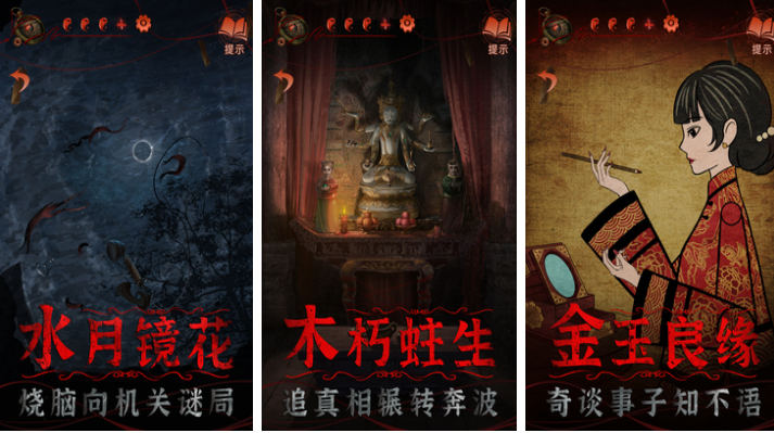延续中式民俗恐怖美学,本作为“纸嫁衣”系列第四部正统续作。场景融合古宅、祠堂、冥婚仪式等典型意象,美术采用低饱和度暗调与手绘纹理叠加,强化阴森氛围。谜题设计深度融合周易卦象、五行生克、民间符咒等传统文化元素,机关触发逻辑紧密关联剧情伏笔,叙事采用碎片化日记与环境线索双轨推进。