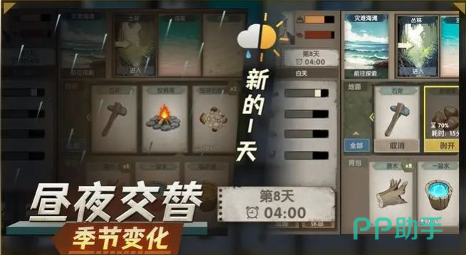 本作以高自由度沙盒生存为核心,玩家作为坠机幸存者登陆未知岛屿,需在有限物资条件下完成食物采集、水源净化、庇护所搭建及技能研习等基础生存动作。游戏内置捕鱼、种植、冶炼、制图等数十项可进阶技能树,任务系统采用非线性触发机制,关卡目标随玩家行为动态生成,强调实时决策与长期规划能力。资源稀缺性贯穿始终,推动玩家持续探索地图边界并优化资源配置效率。