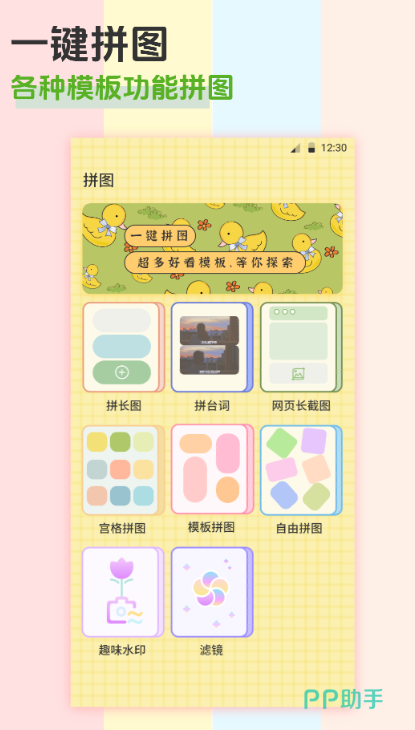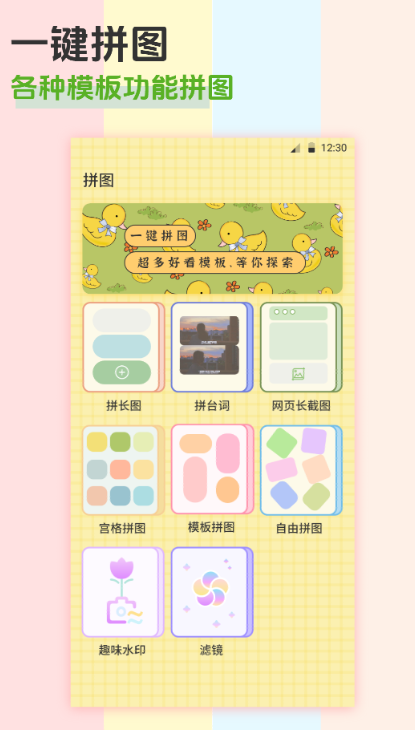 一款面向大众用户的创意拼图工具型游戏。玩家可自由上传本地照片,或从内置海量高清图库中选取素材,搭配数十种预设模板、边框、滤镜及排版布局进行个性化组合。操作采用拖拽+一键适配逻辑,零学习成本;进阶功能如智能裁剪、色彩统一、AI构图建议等,进一步降低设计门槛,激发创作热情。完成作品后可即时保存或分享,满足记录生活、表达审美的多元需求。