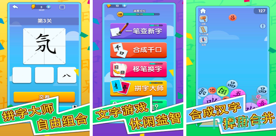 这是一款深度结合汉字文化逻辑的创新型解谜游戏。玩家将扮演文字创造者,在300余关卡中完成汉字拆解、部件重组、偏旁嫁接等多元任务。无需专业背景,新手友好——系统内置六大功能型道具,覆盖提示、重置、跳过等实用场景,通勤、午休等短时场景皆可畅玩。从甲骨文灵感出发,让每个字都成为一次思维跃迁。