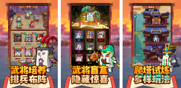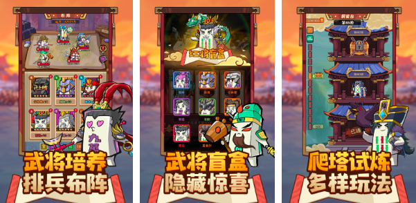 一款融合三国历史叙事与麻将机制的策略卡牌游戏。魏蜀吴三势力英雄以麻将牌面形式呈现,每张牌对应专属技能与羁绊效果。游戏在尊重史实框架基础上加入幽默化演绎,降低理解门槛;武将盲盒系统保障零氪玩家获取核心角色的概率;爬塔副本难度梯度合理,配合骰盅随机加成机制,使PVP与PVE对战兼具策略深度与操作自由度。