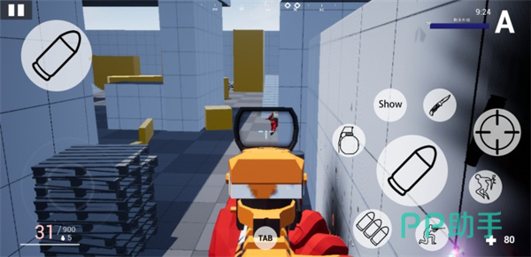 本作构建于高自由度沙盒引擎之上,所有场景均由可交互像素单元构成。玩家可实时编辑光照强度、色温参数与阴影投射角度,并利用方块堆叠逻辑搭建掩体、陷阱通道与多层防御工事。角色模型与武器组件均采用16×16分辨率像素美术规范,动作帧数达24帧/秒,确保跳跃、翻越、匍匐等动作具备物理连贯性。射击反馈包含击中材质音效分层、弹孔纹理即时生成与后坐力驱动的角色重心偏移动画。