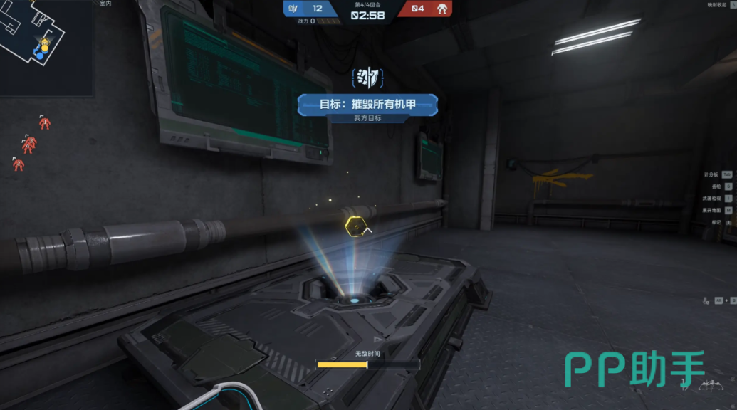 机甲战斗玩法,一场对局会持续四个回合,人类的要求是在有限的时间内摧毁地图内的所有机甲才能获胜,而机甲的目标则是躲避人类的输出成功存活至比赛结束才可获胜。