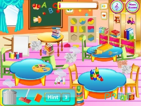 游戏复现多元化的幼儿园日常环境,涵盖户外操场、明亮教室与温馨宿舍三大区域。清洁任务类型丰富,包括归类散落图书、整理积木玩具、擦拭桌面、收纳教具等,强调按尺寸、颜色、功能进行有序摆放;另设互助模块,如协助同伴系鞋带、扶起跌倒的小朋友等,潜移默化培养规则意识与集体责任感。