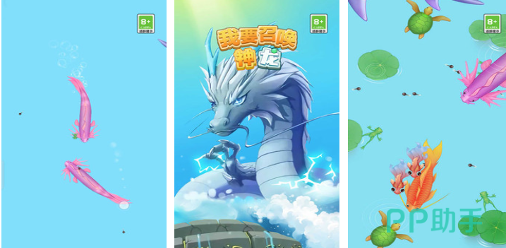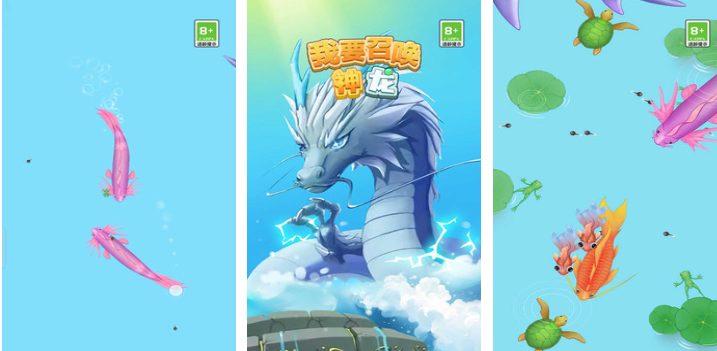 游戏采用阶梯式进化路径:由小金鱼、小乌龟等萌系生物启程,经多次拖拽合成实现物种跃迁,最终达成神龙召唤目标。界面设计清新明快,水底粒子特效细腻灵动,配合轻快音效与丝滑拖拽反馈,营造出高度解压的合成韵律。神秘感贯穿全程,每一步升级都伴随视觉与听觉的双重正向激励。