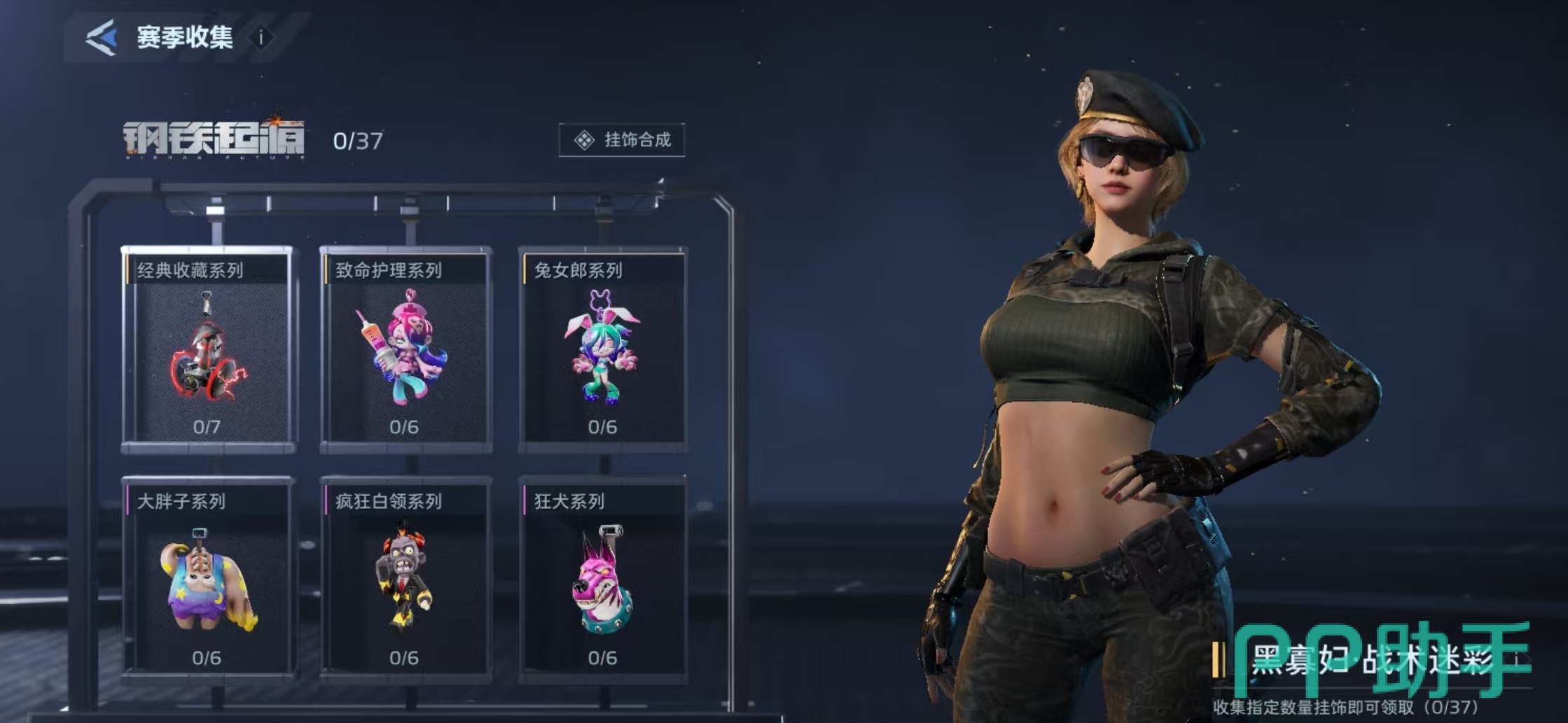 点击进入到赛季收集活动,就可以看到当前所有的可收集类型,只要收集指定数量的挂饰就可以领取黑寡妇战术迷彩,需要的数量是37个。这些挂饰可以通过抽奖的方式得到,也可以通过购买礼包的形式激活,总之大家也无需刻意去做,只要不断收集挂饰,数量达标之后就能直接免费拿到了。