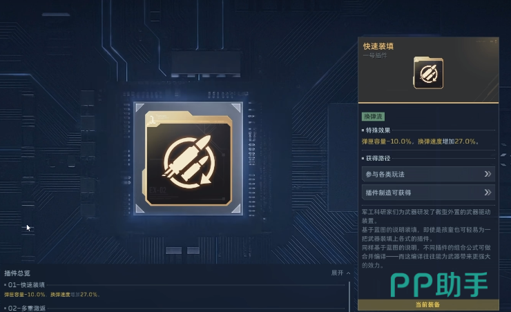 实际应用中,插件选择需遵循“武器特性—作战场景—操作习惯”三维匹配原则。例如使用高射速但弹容量偏低的冲锋枪时,优先搭配扩容插件或弹药补给型插件,可有效缓解换弹节奏压力;面对高密度小怪群时,大容量弹匣配合范围伤害模组,能大幅提升清场效率与资源利用率。