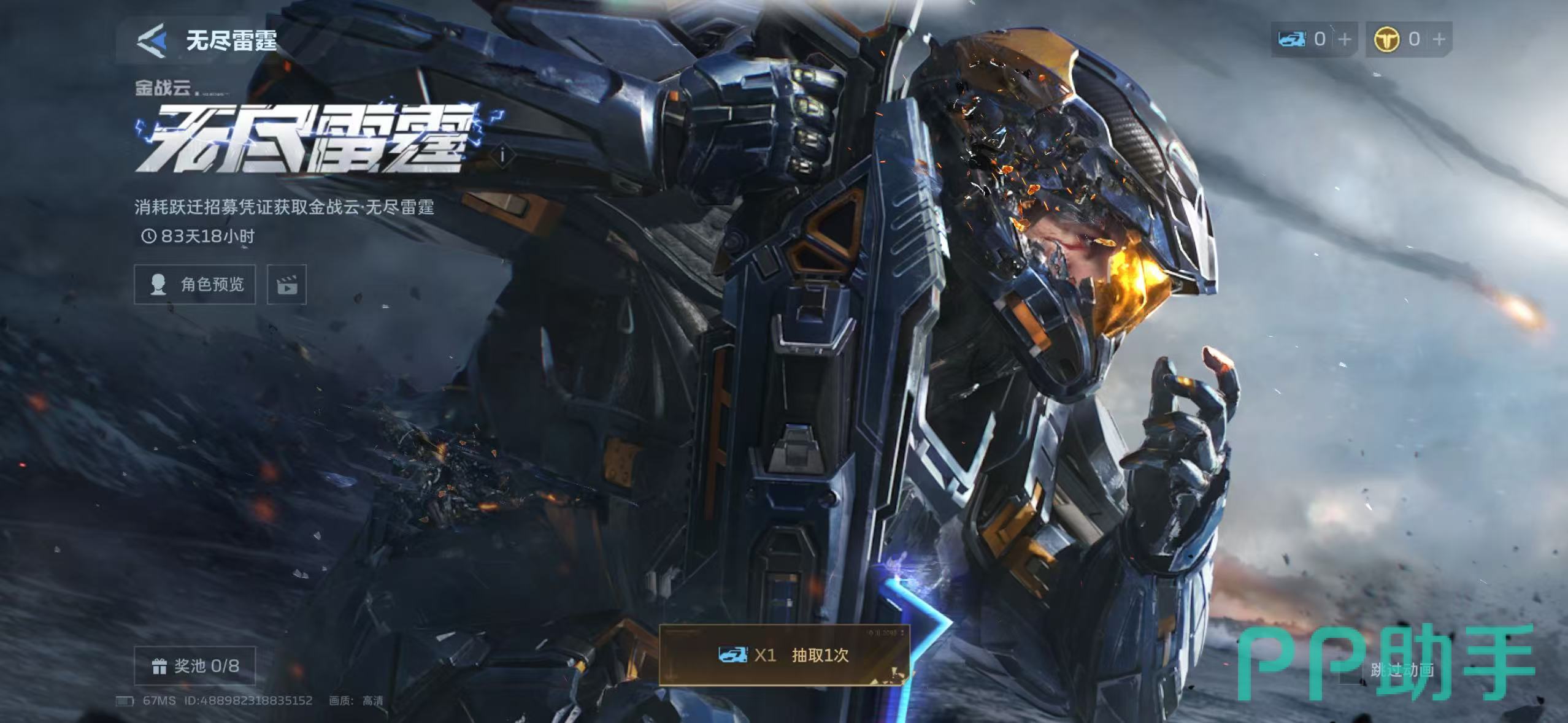 在抽取这个礼包的时候并不是一次抽取就能获得金战云-无尽雷霆这个外观角色,卡池中共有8个内容,也就是能不能抽到全看玩家的脸。建议玩家多积攒几张招募券,n连抽的话出角色概率会高一些。