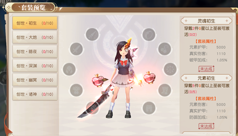 套装效果是时装系统的战略价值所在。目前开放的套装包括初生、大地、暗夜、深渊、幽冥五大系列,每套均设有多重激活门槛与差异化增益。例如:穿戴2件及以上初生系列圣装,即可激活“元素破甲”与“真实伤害”加成;集齐5件时,额外解锁“真实护甲”“防御力提升”及“元素伤害增强”;达成10件满配后,将触发终极套装效果,实现全维度战力质变。不同套装之间互不影响,玩家可根据职业定位与副本需求灵活切换配置。