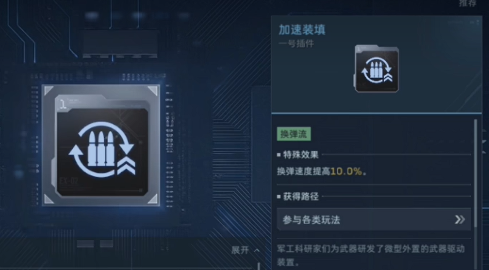 插件安装流程简洁直观:进入武器改装界面后,直接拖拽目标插件至空闲槽位即可完成装配。无需复杂操作或额外资源消耗,所有调整均可即时生效。值得注意的是,插件品质直接影响基础属性加成幅度,金色插件提供的数值提升显著高于蓝色与紫色同类插件。