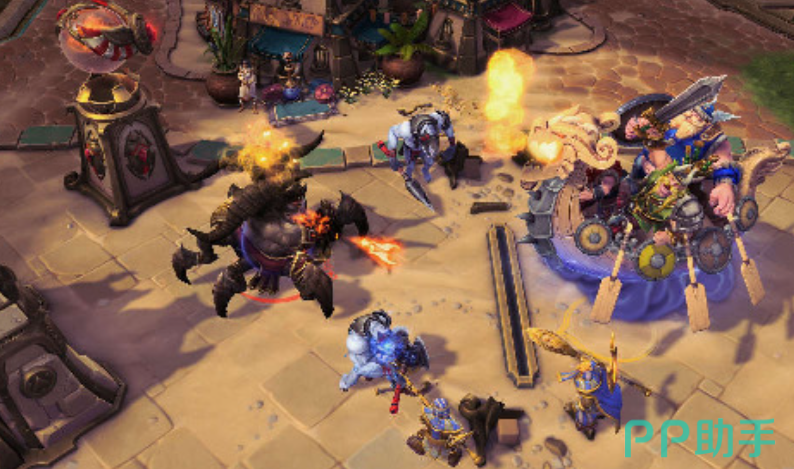 《风暴英雄》重构MOBA品类底层逻辑,取消传统“补刀”与“买装”机制,转而聚焦英雄技能升级与地图目标争夺。全英雄共享通用等级池,每升一级解锁主动技能强化选项;地图内置动态事件(如屠龙、海盗船、花园Boss),成功参与可获团队增益;小兵自动推进,玩家全程专注团战节奏与地形控制。其技能组合强调协同效应:治疗链可跨地形传递,控制技能存在连锁触发判定,大招释放需预判敌方走位与地形遮挡,对意识与配合提出更高要求。