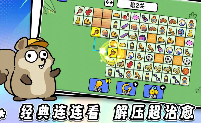 延续经典连连看逻辑,界面高度精简,去除干扰元素。图案选用日常物品(如苹果、小熊、积木等),降低符号识别难度。连线支持直线及单次折线,路径清晰可视。操作方式为点击配对,无需长按或滑动,适配幼儿触控精度。关卡时间限制由宽松逐步收紧,帮助延长持续注意时长;成功连线触发光效闪烁与鼓励音效,强化行为反馈。过程中持续训练图形辨析能力与瞬时记忆调用效率。
