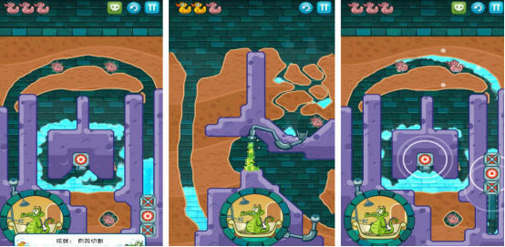游戏主角是一只生活在地下管道系统中的小鳄鱼,它热爱清洁却常被复杂地形困扰。每一关需避开有毒液体、水藻阻隔等障碍,通过重力引导、水流路径规划等方式,将清水精准导入浴缸。通关后依据完成效率与收集鸭子数量评定星级,考验玩家对物理机制的理解与预判能力。