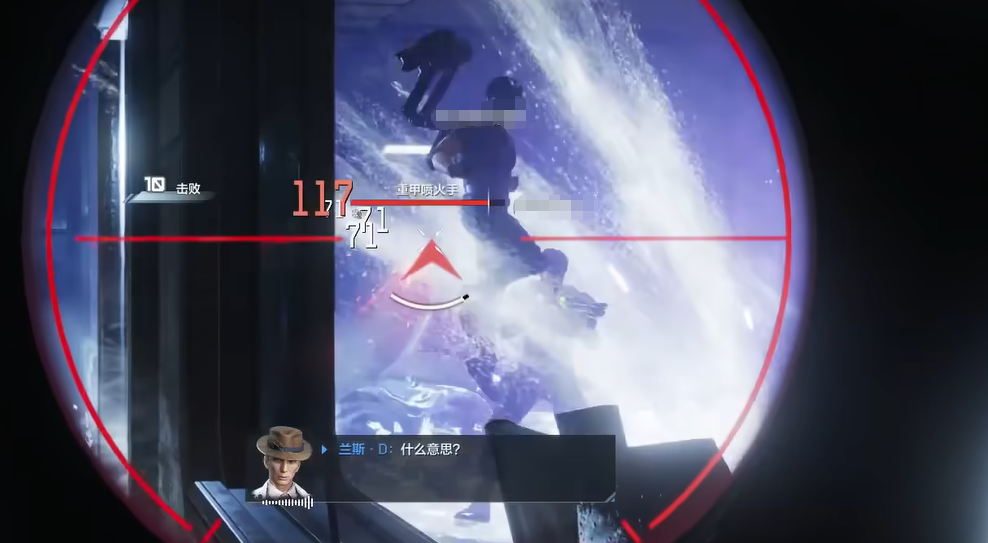 第二场景为兰斯护送任务。行进至左前方首个转角时,将遭遇两名安保精英,推荐使用爆炸弓进行范围压制。随后长廊两侧将定时刷新喷火兵,该单位具备极高秒杀能力——一旦启动燃烧模式,常规角色几乎无法承受其单次攻击。应对策略为优先摧毁其背部油罐,其余部位(含头部)命中均造成极低伤害;需特别注意:背击致死将触发一次范围爆炸,清场时务必保持安全距离。