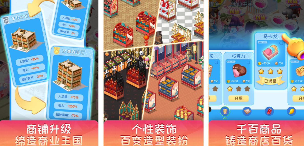 该游戏强调空间叙事与消费心理的双重设计,以顾客动线为底层逻辑,构建起视觉引导—停留时长—购买转化的完整闭环。其独创的软装自定义系统支持数百种装饰组件自由组合,玩家可在固定营业面积内实现风格化店铺搭建,同步提升品牌识别度与客单价。