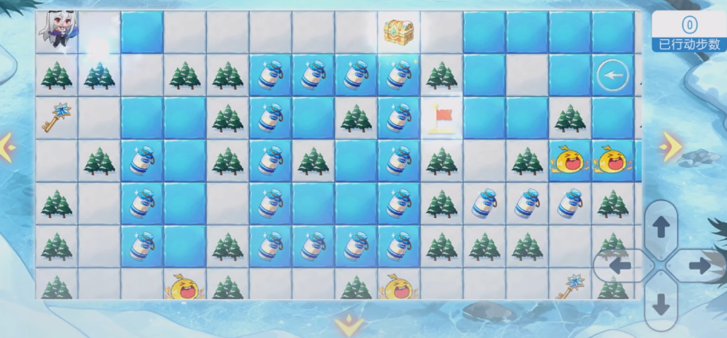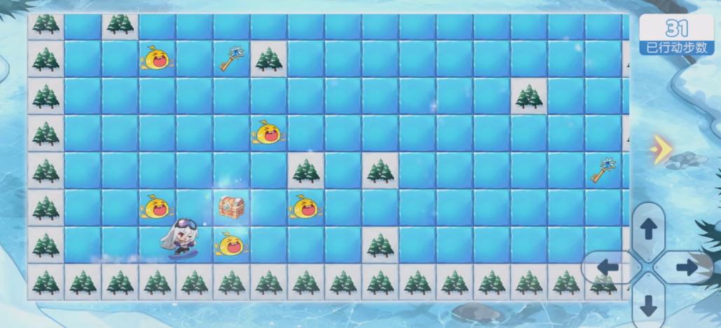 其实并不是很复杂,目标就是消耗尽可能少的步数来完成“奶瓶”的搜集,同时抵达终点。因为冰面很滑,所以当冰面没有阻碍的时候会直接碰到尽头的树上才会停下,第一关大家可以按照这个路线来走。