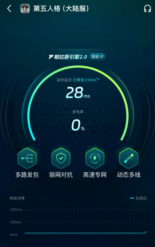 界面简洁,操作零门槛。启动客户端后,在游戏库中输入“第五人格”,选择对应大区(如安卓全服、iOS官服等),点击“加速”按钮即可完成配置。系统内置自适应引擎,无需手动切换协议或调整参数,全程后台智能优化。同时全面支持Android与iOS双平台,各机型兼容性经过实测验证,确保加速状态稳定不掉线。