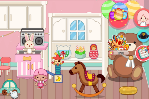 采用点击即响应的轻交互机制,操作直观易懂,适配低龄儿童触控习惯。孩子可在家庭、厨房、卧室等多个生活化场景中自由切换角色,体验照顾玩偶、整理床铺、模拟烹饪等行为。职业设定涵盖医生、厨师、教师等十余种基础社会身份,配合语音提示与步骤引导,帮助建立初步的生活秩序感与责任意识。