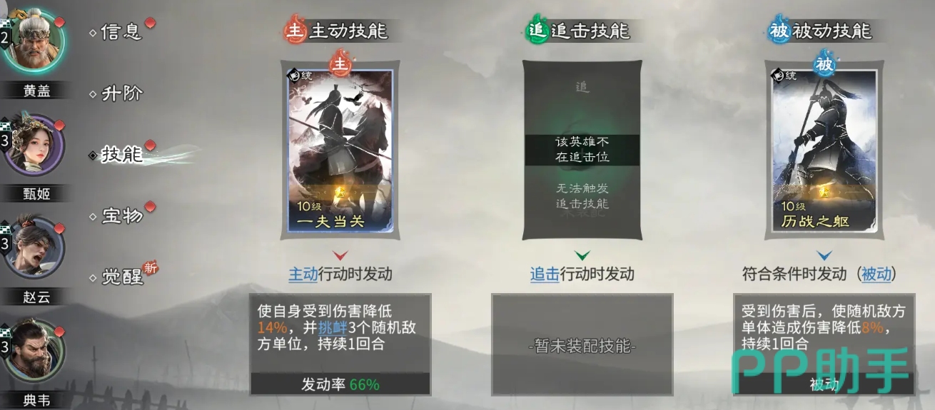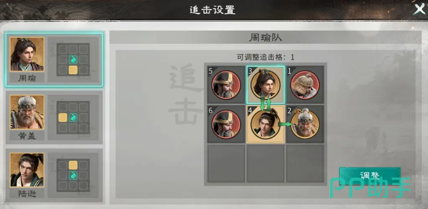 阵容搭配方面,推荐以周瑜为指挥核心,协同陆逊与黄盖组成三将灼烧闭环。陆逊承担关键辅助职能:其主动技能可额外叠加两层灼烧,有效弥补周瑜初期层数不足;同时自身战力成长曲线平滑,即使周瑜尚未满配,二者联动仍可稳步提升整体指挥效能。黄盖则作为被动增益支点,其核心机制为——受击后随机对敌方单位施加灼烧,并放大全队灼烧伤害。该效果可高频触发,显著提升灼烧覆盖率与稳定性。