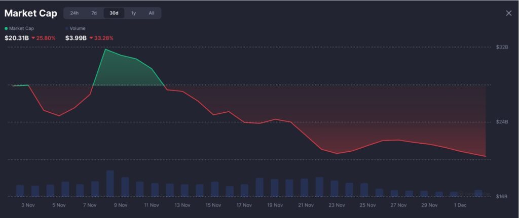 尽管有大量资金注入,人工智能代币仍然暴跌。该板块的总市值跌至203.1亿美元,较11月至12月暴跌33.28%。