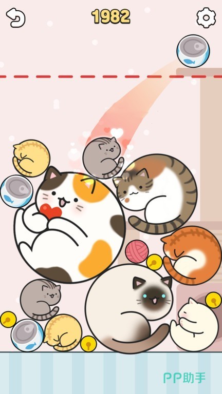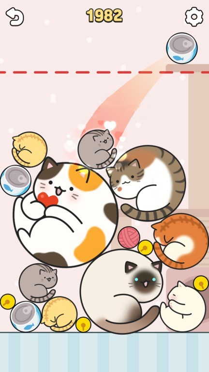 延续经典合成玩法框架,本作将合成对象全面替换为猫咪形象。不同品种、毛色的猫咪对应差异化合成路径,例如两只普通橘猫合并可能生成稀有布偶猫。整体画风清新治愈,UI界面圆润柔和,背景音效采用拟真猫叫采样,营造轻松愉悦的交互氛围。