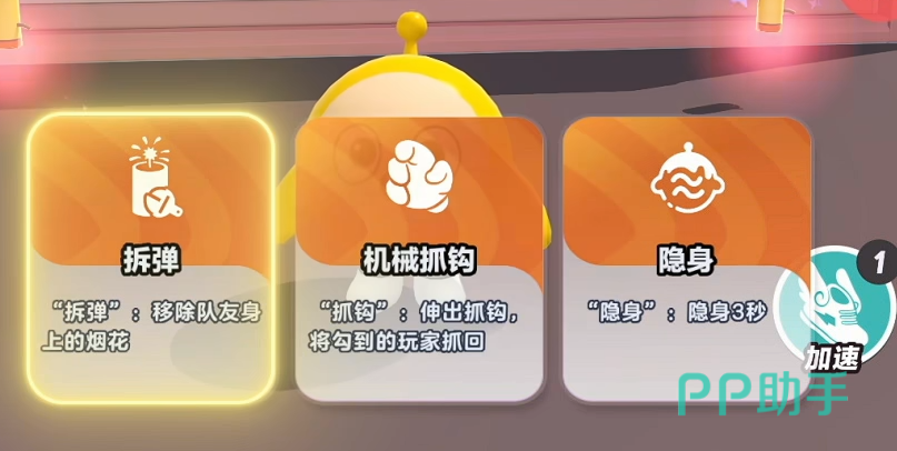我们在进入游戏之后可以在地图之中看到不少烟花道具,这些道具咱们都可以进行拾取,在拾取之后便可以获取到一次性的烟花技能。同时咱们在靠近其他蛋仔的时候还会获取到加速的能力,我们可以趁其不备将烟花给传递出去。