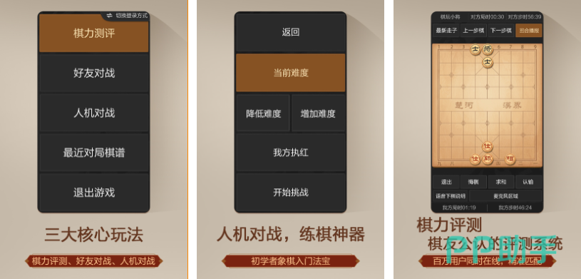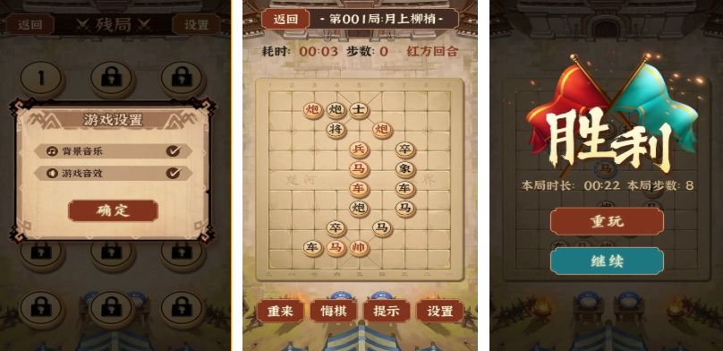 本作专为全人群设计,特别强化无障碍交互支持,视障用户亦可通过语音提示与触控反馈顺畅参与对局。竖屏界面简洁清晰,功能层级分明,集成人机对战、实时匹配、棋力评测三大核心模块。古风UI融合水墨元素,营造沉浸式博弈氛围;操作响应迅速,落子反馈明确,大幅降低上手门槛。长期使用有助于系统提升布局意识与残局处理能力。