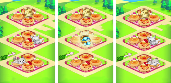 融合合成机制与轻度模拟经营,构建多线程成长系统。建筑采用双单位合成路径——两个同等级设施合并升阶;同步拓展农场种植、萌宠喂养、食材采集等支线玩法。农作物成熟后进入烹饪链,支撑菜品制作闭环,形成“种植→收获→合成→出品”的完整资源循环逻辑。