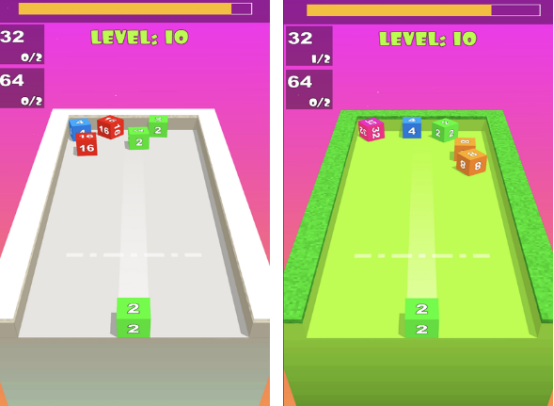 以彩色砖块为载体呈现2048合成体系,包含100+递进式关卡设计。每个关卡限定主色调与目标数字组合,玩家需通过手指拖拽发射对应数字砖块,实现同值碰撞合并。数字范围覆盖个位至四位数,配合五色区分系统与动态光影反馈,提升识别效率与操作沉浸感。