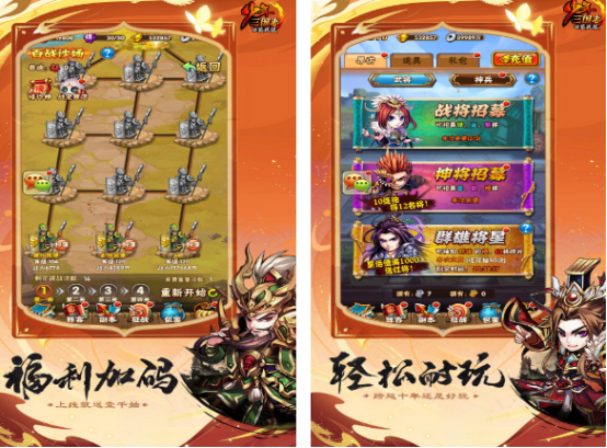 以东汉末年群雄割据为叙事基底,采用Q版国风建模重构经典三国人物。游戏核心围绕“少年化”武将成长体系展开,每位神将拥有专属战役副本与羁绊逻辑。战斗采用半自动回合制,强调阵容克制与技能释放时机。副本类型覆盖剧情推进、跨服竞技、妖魔讨伐等,全程免费开放全部主线章节与基础招募功能。