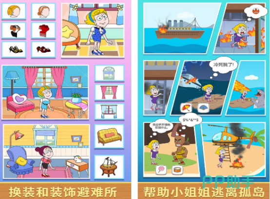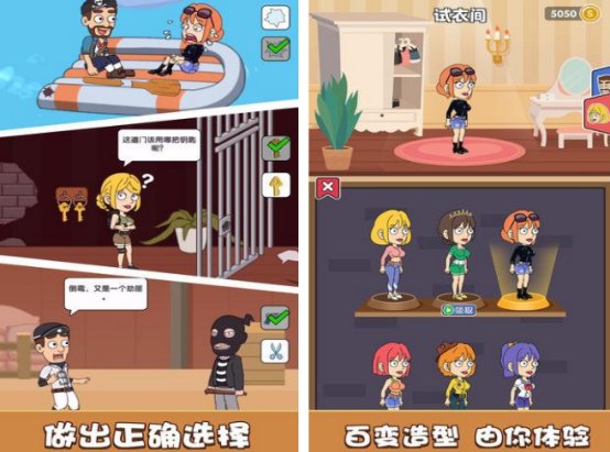本作是一款主打荒诞风格与高自由度解谜机制的手游,玩家需在多变环境中协助一位女性角色脱离困境。关卡设计融合孤岛生存、灵异探秘等多元主题,例如在空无一人的荒岛中为其搭建临时庇护所、获取淡水与食物;或在阴森鬼屋中识别机关陷阱、规避危险事件。所有操作均依赖对场景细节的敏锐捕捉与非常规思路的应用,结局走向由关键决策链决定。
