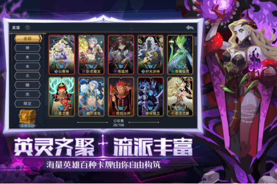 开放世界向卡牌RPG,收录超200名原创英雄,按天使、恶魔、精灵、龙族等九大种族划分。角色拥有独立技能动画与专属剧情线,卡组构建需考虑种族共鸣加成、职业定位(坦克/输出/辅助)及元素相克关系。PVE副本与跨服PVP战场同步开放,赛季制玩法保障内容持续更新。