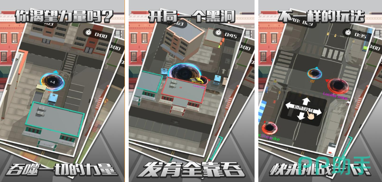 主打多人同图竞技的沙盒式吞噬对抗产品。玩家从微型黑洞出发,在海岛、都市、雪原等多主题地图中自由游走,通过吞噬环境物体与敌方黑洞扩大自身质量。质量优势决定碰撞胜负,策略性体现在路径规划、诱敌围堵与时机把控。魔性物理引擎带来夸张但不失逻辑的吞噬反馈,配合简洁UI与低学习门槛,适合碎片时间畅玩。
