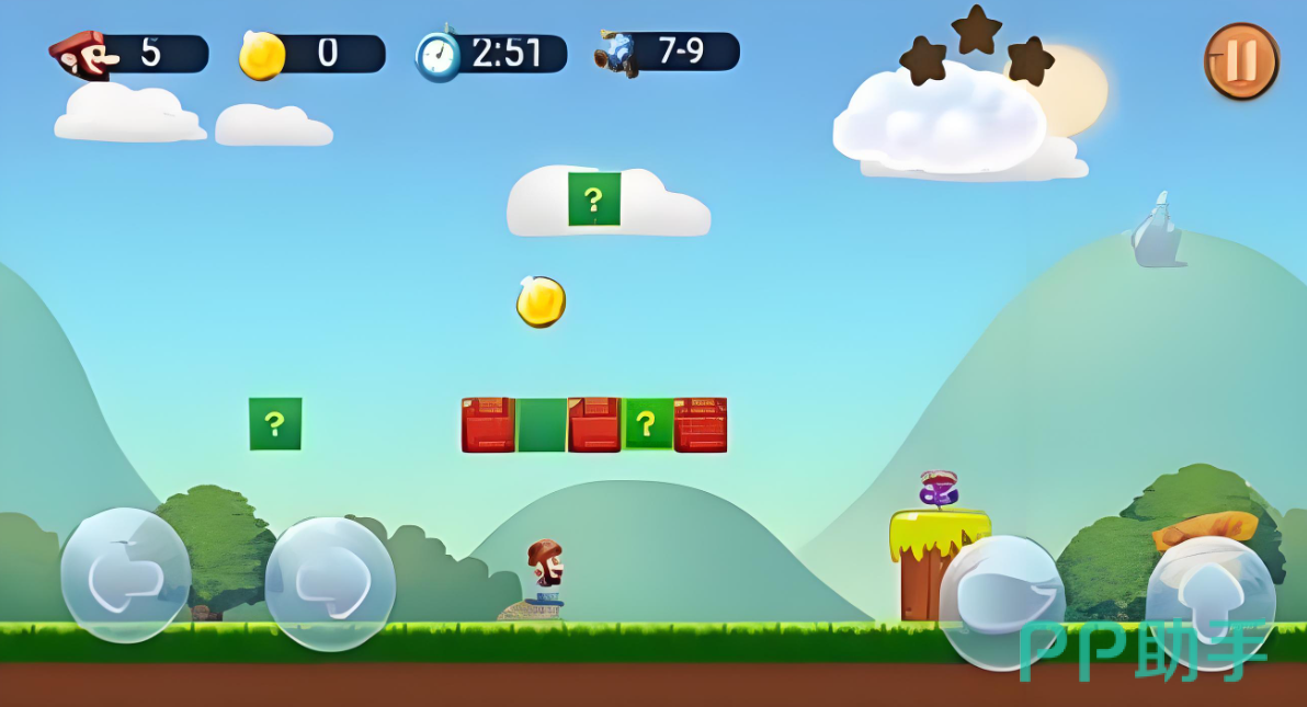 主角“磊子”拥有与马里奥一致的移动参数:奔跑最高速度6格/秒、跳跃初速度8格/秒、空中滞留时间0.35秒。关卡采用模块化拼接设计,杜绝重复布局。金币散点密度维持在每屏可见区域8–12枚区间,匹配人类短时视觉搜索极限。新手引导采用分步交互教学,首关仅开放基础跳跃指令,后续逐层解锁攻击、蹲滑等进阶操作。