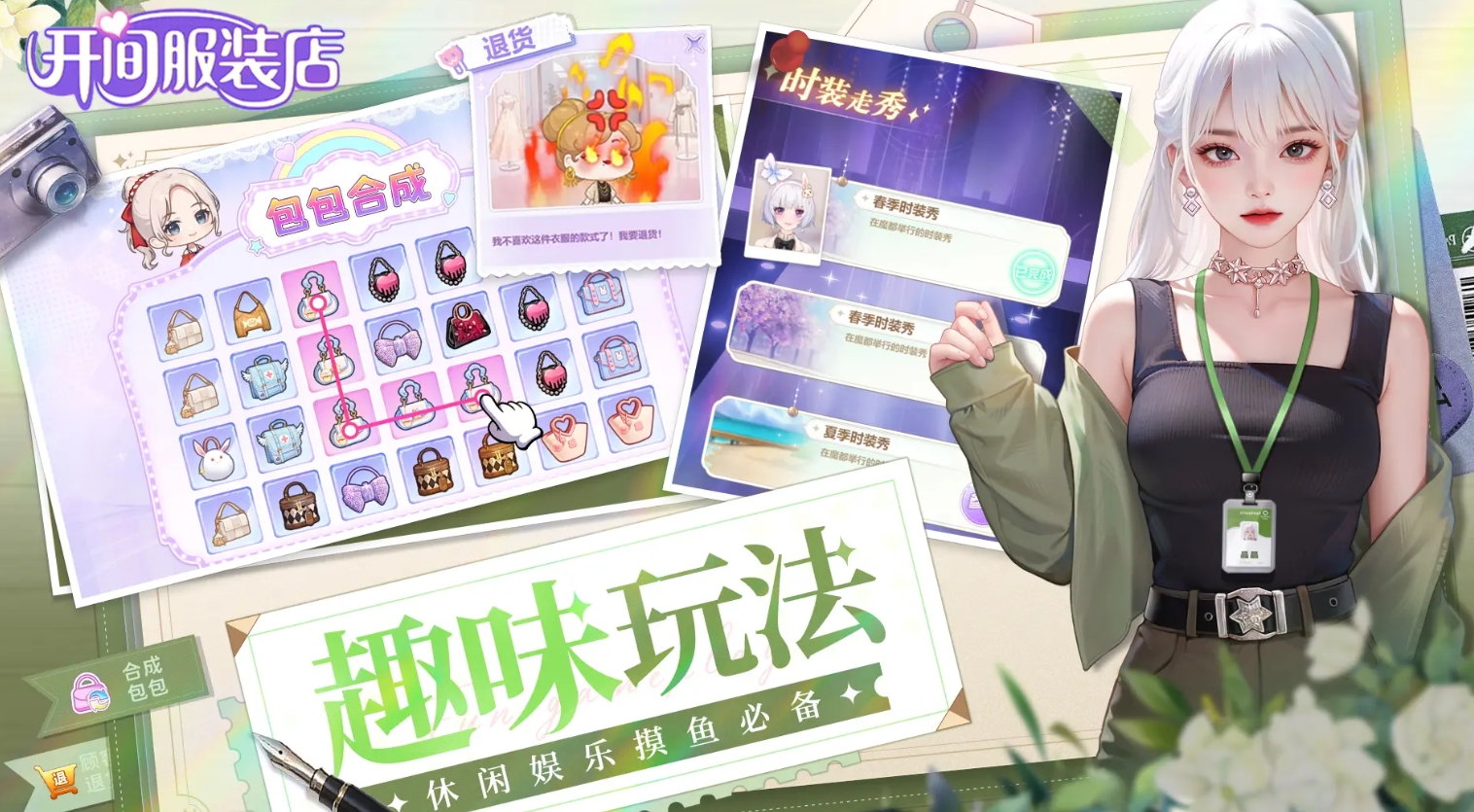 模拟经营+换装双核玩法作品。玩家扮演独立设计师,从零起步筹建个人服装品牌。服饰获取方式包含盲盒抽取(含常规款、限定款、联名款三大池子)、顾客委托定制、时装周积分兑换等,单类服饰(如连衣裙)下设款式超一百二十种。系统内置AI搭配建议模块,可根据顾客职业、年龄、场合自动推荐三套方案;玩家亦可上传原创设计图参与赛季评选,优胜作品将实装进游戏商城。