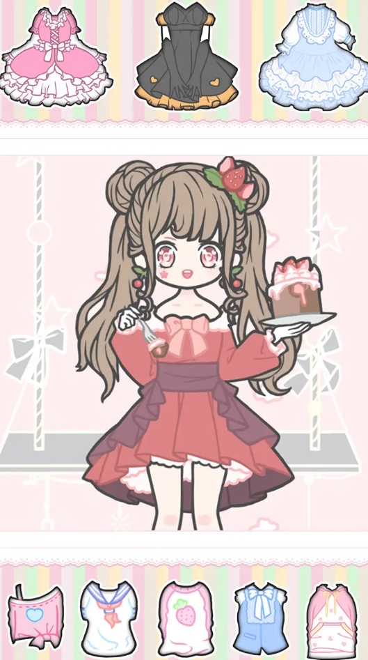 本作采用清新甜美的手绘风格,整体视觉呈现高度契合少女审美取向。内置服饰库覆盖日常、派对、礼服、运动、校园等十余种风格方向,含完整套装与独立单品超两百件,支持分层穿搭与细节微调。玩家可自定义角色肤色、发型、妆容,并在完成造型后切换多组主题背景进行场景化拍摄,强化沉浸式装扮体验。