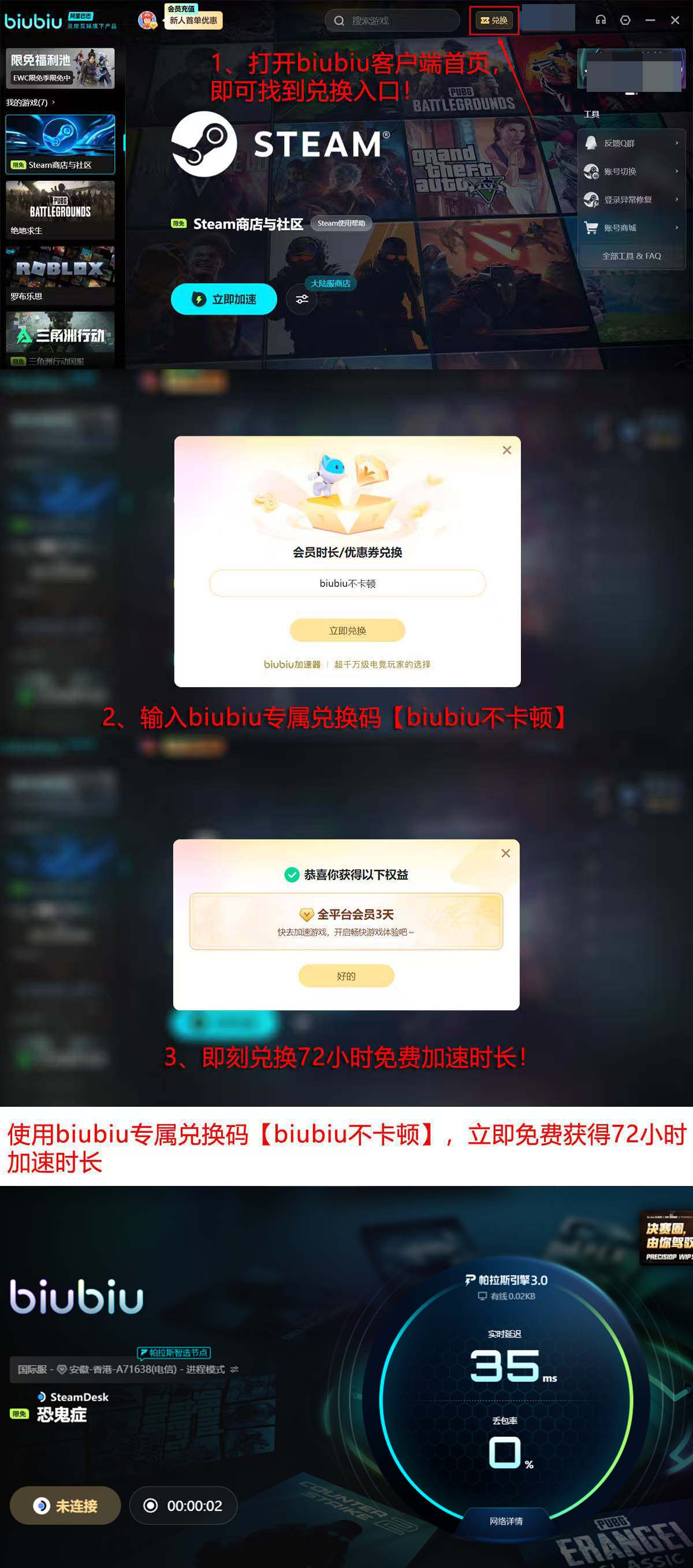 目前,官方面向新用户提供注册即赠24小时全功能试用权限;完成账号绑定后,可在首页输入口令【biubiu不卡顿】额外领取72小时加速时长——新老用户均可参与一次,累计最高可达96小时无限制使用。该试用周期覆盖完整的游戏流程验证,包括大厅匹配、房间创建、语音通信、证据扫描及幽灵追击等全部关键环节,帮助玩家切实评估网络稳定性提升效果。