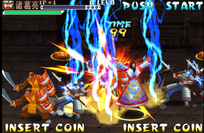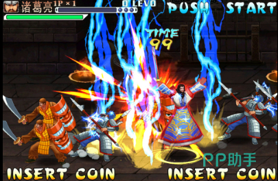 本作深度还原街机格斗体验,改编自《三国演义》IP,支持最多四人同屏协作。玩家可操作关羽、赵云等标志性武将推进剧情关卡。特色系统包括“降服敌将”机制:击败指定Boss后获得援军令,战斗中召唤降将助战,每位援军拥有专属绝技,但存在持续时间限制及被击退设定。此外,“四招一式”连招体系支持自由组合,连续命中可累积分数并触发角色阶段性强化。