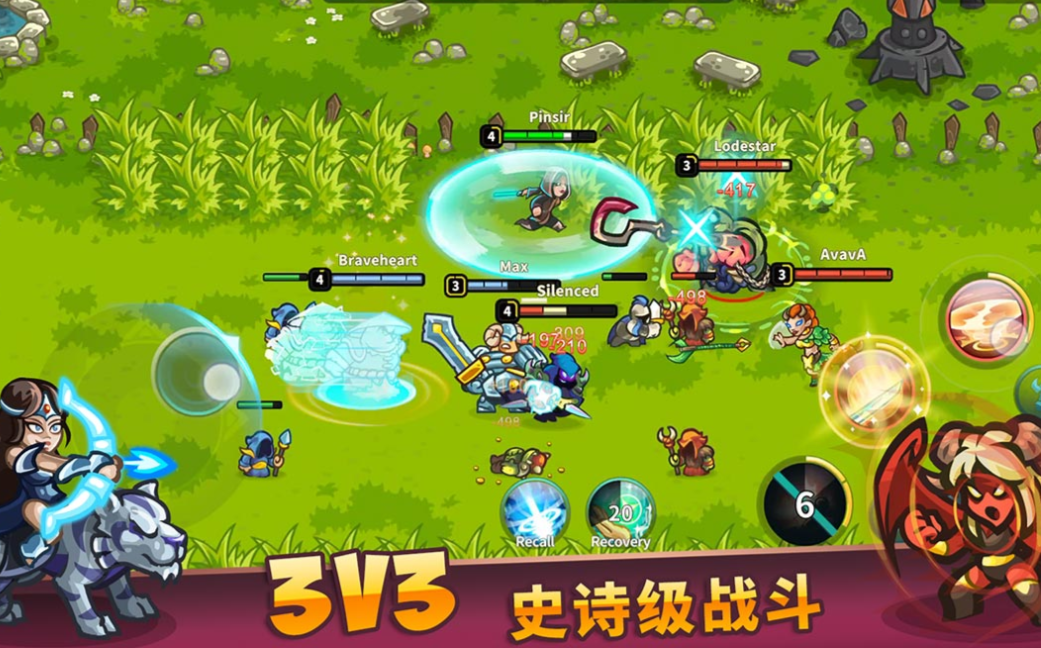 一款轻量化MOBA对战应用,采用俯视角固定镜头,界面元素大幅简化,防御塔、小兵及英雄模型均以Q版低多边形建模呈现。操作逻辑精简为双摇杆+一键技能,装备系统提供超过80种主动/被动道具组合。支持3V3快速匹配,单局时长控制在12分钟以内,主打碎片化竞技体验。其美术风格与激烈战斗特效形成鲜明反差,构成独特记忆点。