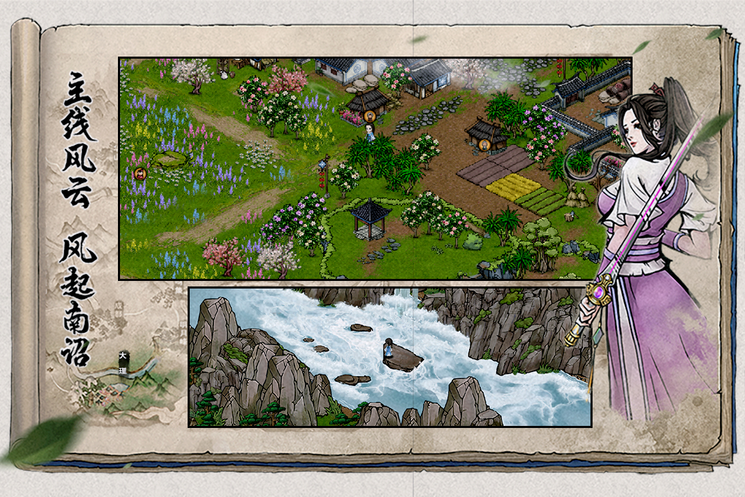 一款水墨风格武侠题材RPG手游,背景设定于北宋末年乱世。玩家化身初入江湖的侠者,可拜入十二大门派之一,通过完成门派任务习得对应武学流派;亦可邀请志同道合的伙伴组建小队协同作战。战斗采用回合制机制,强调站位策略与技能链衔接逻辑。全作共设31张精细手绘场景地图,并引入动态天气与昼夜循环系统,部分隐藏剧情与特殊道具仅可在特定气象条件或时辰内触发。