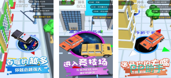 支持4人同屏或联网协作的物理模拟类游戏。每位玩家操控一个可成长黑洞,通过持续吞噬场景内物体扩大体积与引力范围。初期体型小巧、机动性强;后期体积庞大、转向迟缓,需更精细的走位与团队分工。破坏过程采用夸张卡通动画表现,高楼崩塌、车辆翻滚等视觉反馈极具解压效果,强调配合意识与空间预判能力。