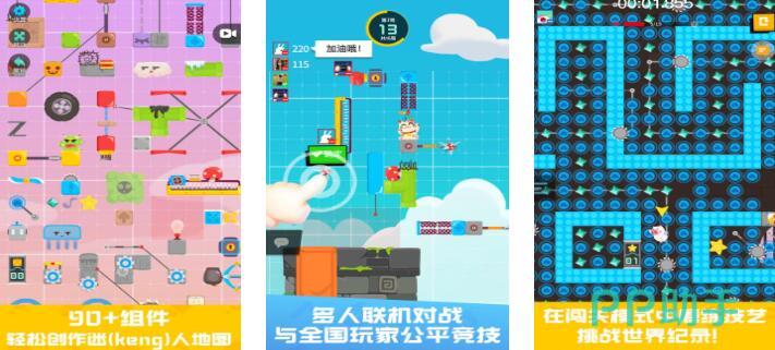 一款强调自由协作与创意表达的多人闯关作品,支持最多4人本地或在线联机。关卡设计融合跑酷、解谜与机关触发等元素,通关需依赖队员间实时动作配合。核心亮点为地图编辑器功能,玩家可自主构建包含陷阱、传送点与动态机关的个性化关卡,并一键分享给好友挑战。整体采用明快卡通画风,强化欢乐感与社交趣味性。